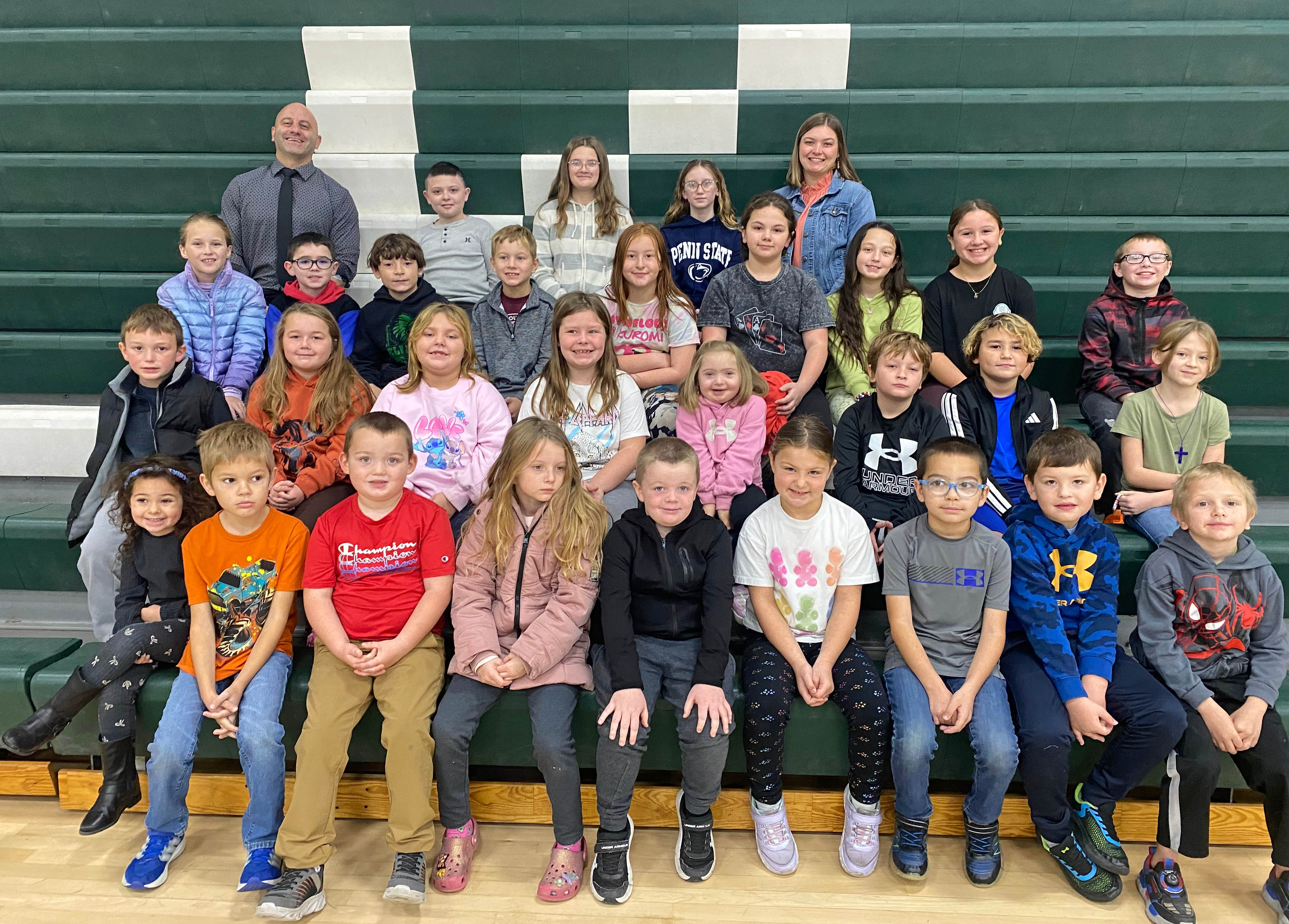 Pictured above (l-r) are the grades K-6 students: first row - Ava Hillier, Rylan Tewskbury, Oliver Traver, Sophia Moore, Jackson Teetsel, Eliana Lunger, Gabriel Shoemaker, Zane Johnson, Liam Fletcher; second row - Kallam Kipar, Paytyn Mattocks, Maya Wolf, Peebie Keiper, Varah Purdy, Ronnie Robinson, Micah Seguinot, Harmony Cutting; third row - Paislee Traver, Jack Guiton, Glenn Cooper, Winston White, Lily Baldwin, Emma Maginley, Scarlett Naylor, Ainsley Cokely, Aaron Martin; fourth row - Mr. Weisgold, ZGunner Bonavita, Morgan WIlliams, Madison Cameron, Dr. Puza. Absent from photo: Branson Wolf, Keira Taylor, Dominick Buckingham.