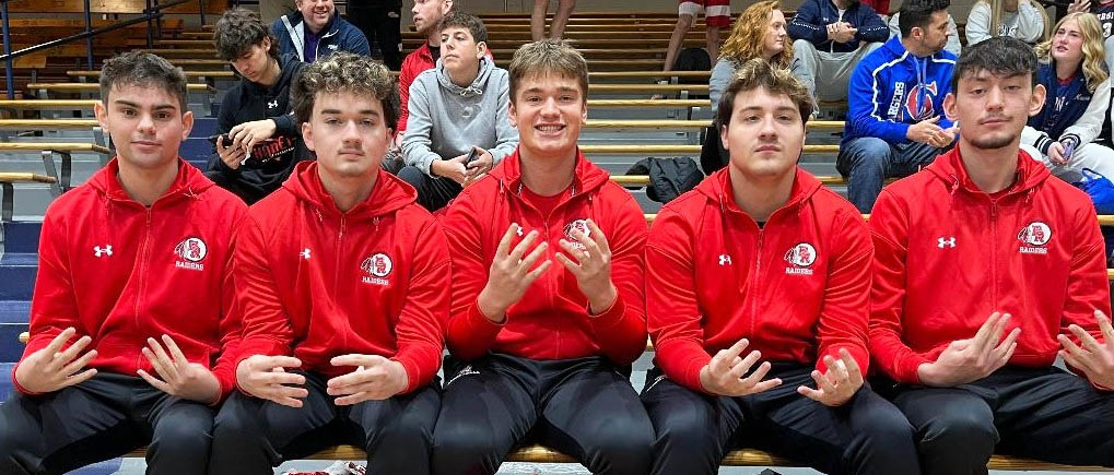 Blue Ridge boys' basketball players who attended the Coaches vs. Cancer Media Day Sunday were, from left: Landon Bishop, Brenden Marvin, Jaycek Motyka, William Hobart and Paxton Pingarelli. (Tom Robinson Photo)