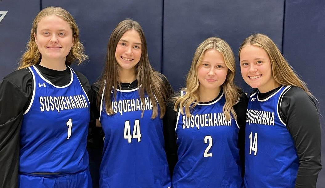 From left, Lauren Huyck, Esther Davis, Marley Smith and Madison Beach represented the Susquehanna girls' basketball team at Sunday's Coaches vs. Cancer Media Day in Scranton. (Tom Robinson Photo)