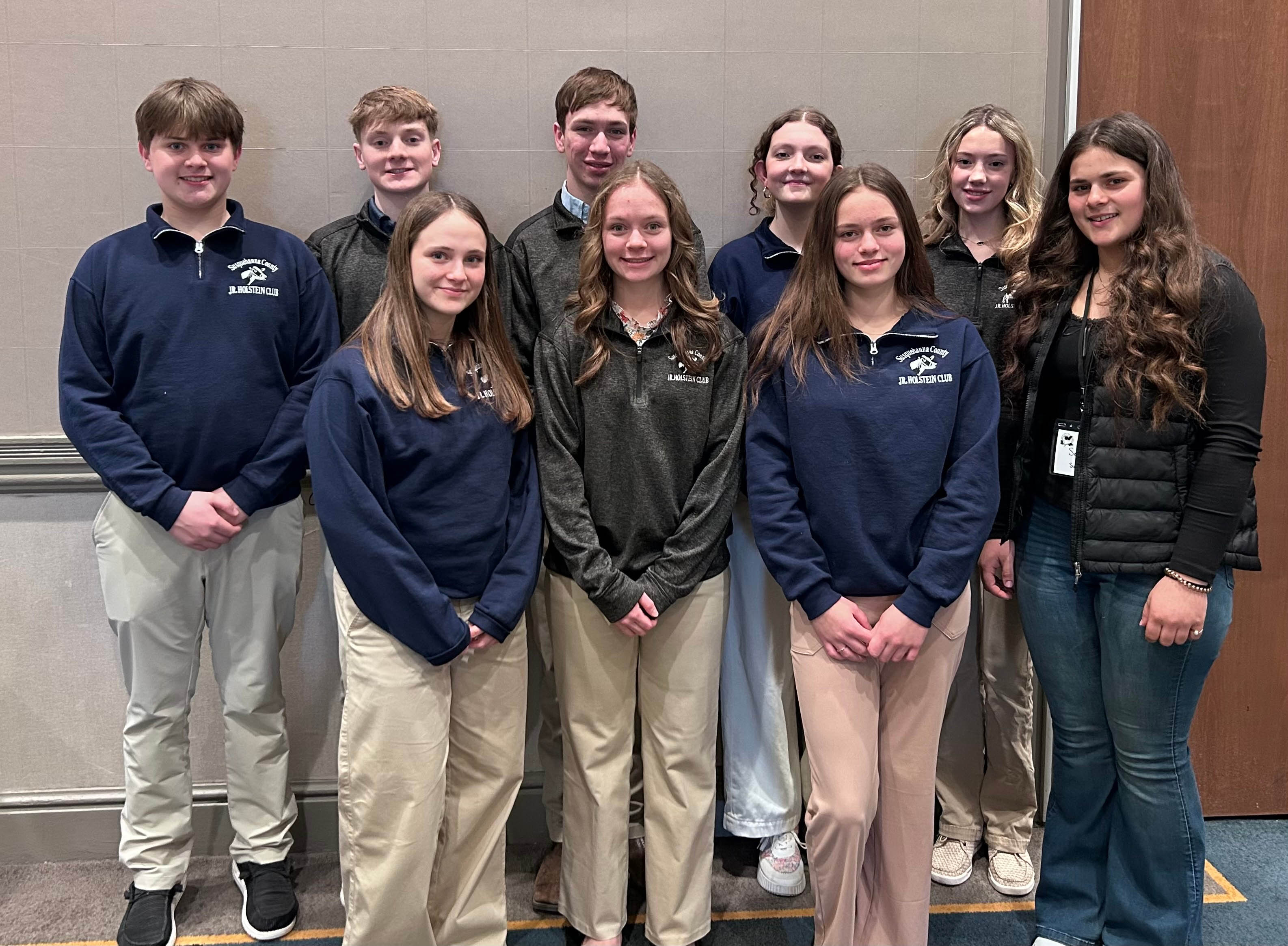 On February 6th-8th the Susquehanna County Jr. Holstein Club competed at the Pennsylvania Holstein Association convention in Mars, PA. Members competed in dairy jeopardy, quiz bowl, and the scientific poster contest. These contests test the youths' knowledge of the dairy cow and the dairy industry. Thanks to great coaches, helpful family members, and lots of hard work and dedication, the nine members who competed had great success.
