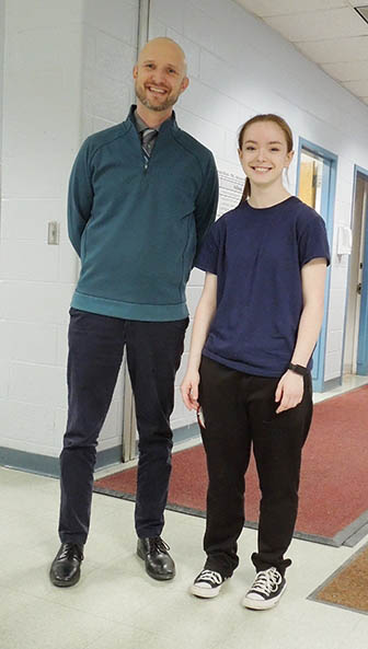Elementary School Principal Danelle Decker with 5th-Grade Student of the Month for January Damon Ebhardt
