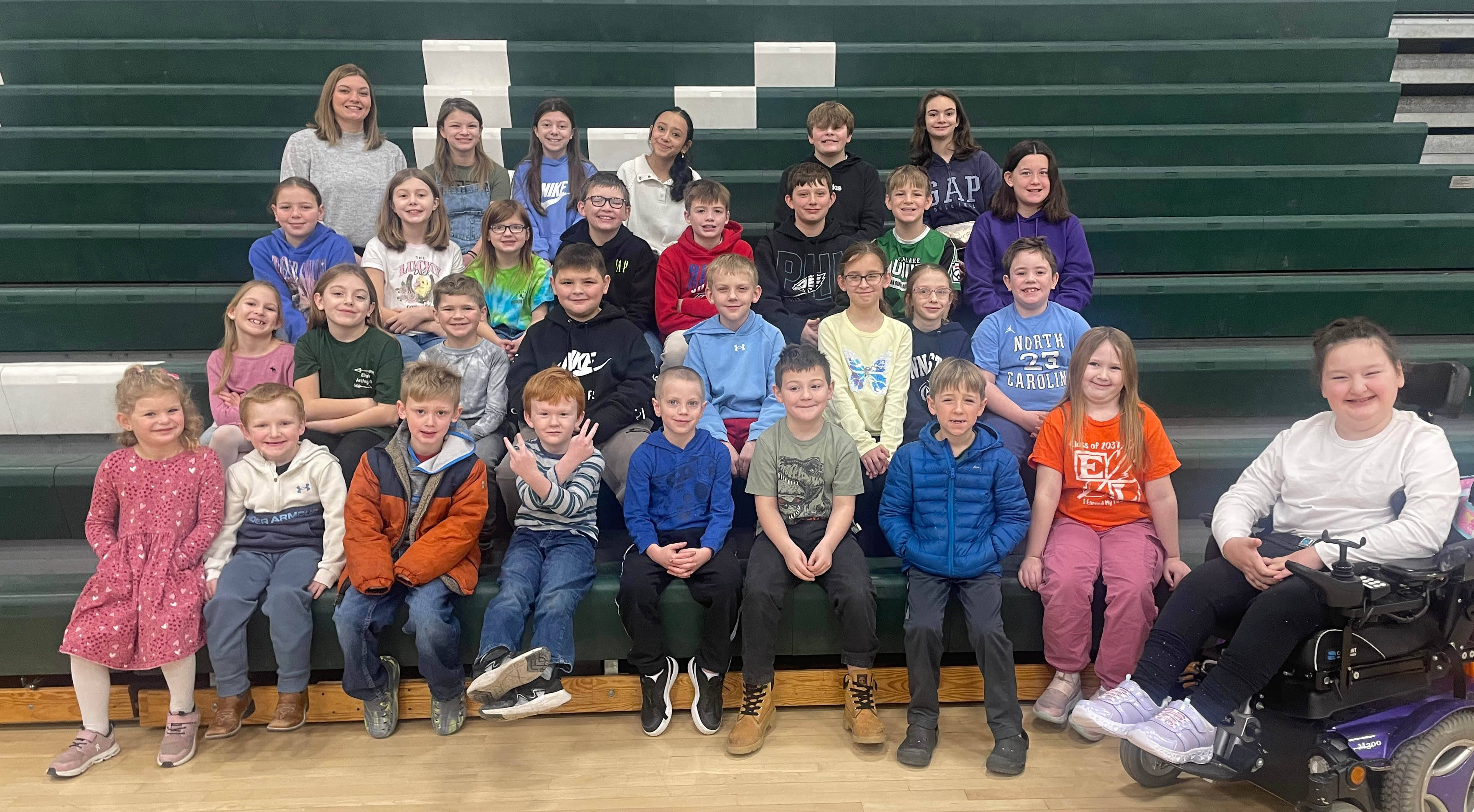 Pictured above are the grades K-6 students: first row - McKinley O'Donnell, Branson Smith, Tucker Howey, Benjamin Marshall, Lucas Allen, Mickey Sible, Andrew Fox, Winslow Prevost, Lexi Overfield; second row - Amelia Kelley, Dakota Sickler, Jackson Freemen, Joey Dafcik, Lincoln Colegrove, Ava Rudock, Abby Camerson, Bryson Hall; third row - Kylie Fletcher, Abigail Matello, Charlotte Walsh, Kason Kiefer, Lucas Puza, Trevor Griffiths, Andrew Bishop, Brannagh Patton; fourth row - Dr. Kammy Puza, Ameerah Drost, Kaylee Delvey, Deyse Velasquez, Clayton Dunn, Alyah Murphy. Absent from photo: Hunter Huff, Jack Grieshaber.